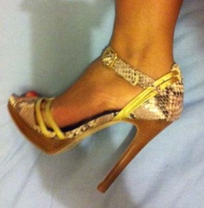 I got home, and opened my Pandora’s shoes boxes. And I knew which one would fit the bill – a lovely snakeskin and gold, Brazilian make Ibiza pair, which I have worn once.