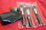 I got the set that comes in a lovely pouch and comes with 9 brushes: 3 face (duo fibre, blusher and foundation), 5 eye (shading, blending, crease, small shader and angled brushes) and lip liner. It also come with a soft powder puff.  In addition to that, I got the angled contour, the flat powder, a normal powder and a cute kabuki brush in a pouch.