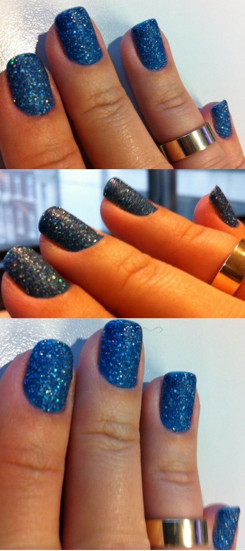 The first one was the lovely blue “Get your number”. It is a lovely indigo blue glitter with some holographic glitter in it, so really laden with sparkle.