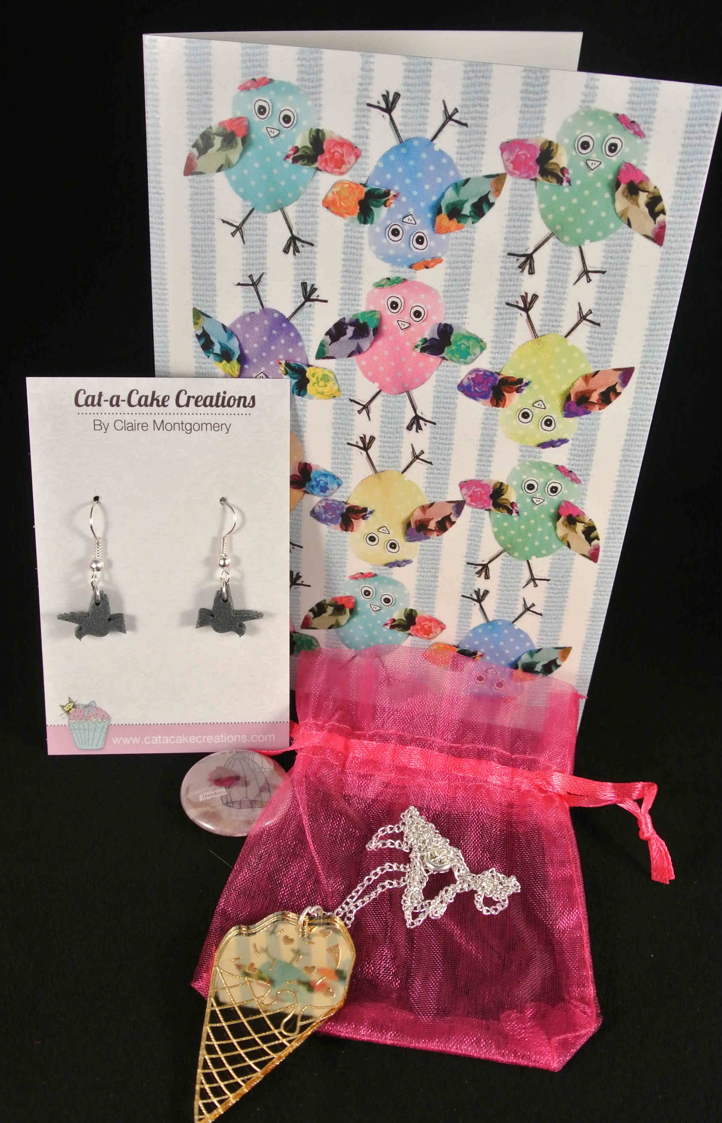 You can browse Claire’s jewellery line (which contains necklaces, brooches, charm bracelets, charms, phone charms, and earrings) and her gorgeously illustrated greeting cards (she has an amazing offer available, but will also pick up commissions) on the Cat-a-Cake Creations site and you can buy online on her Etsy site. Oh, and everything is lovingly made by the seaside!