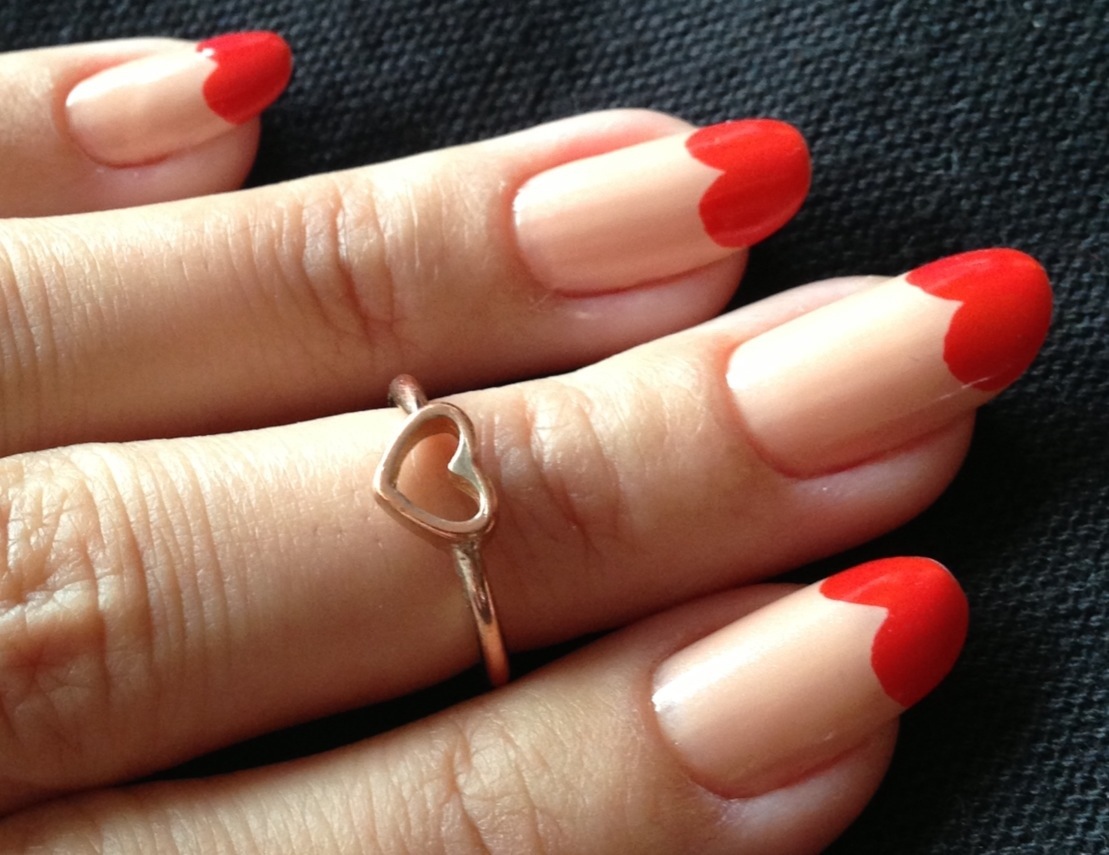For a very long time I wanted to try this lovely manicure. But I ALWAYS had square shaped nails, since I can remember. And this “heart” tips don’t really look good on a square nail, after all, no hearts have a square bottom, right?