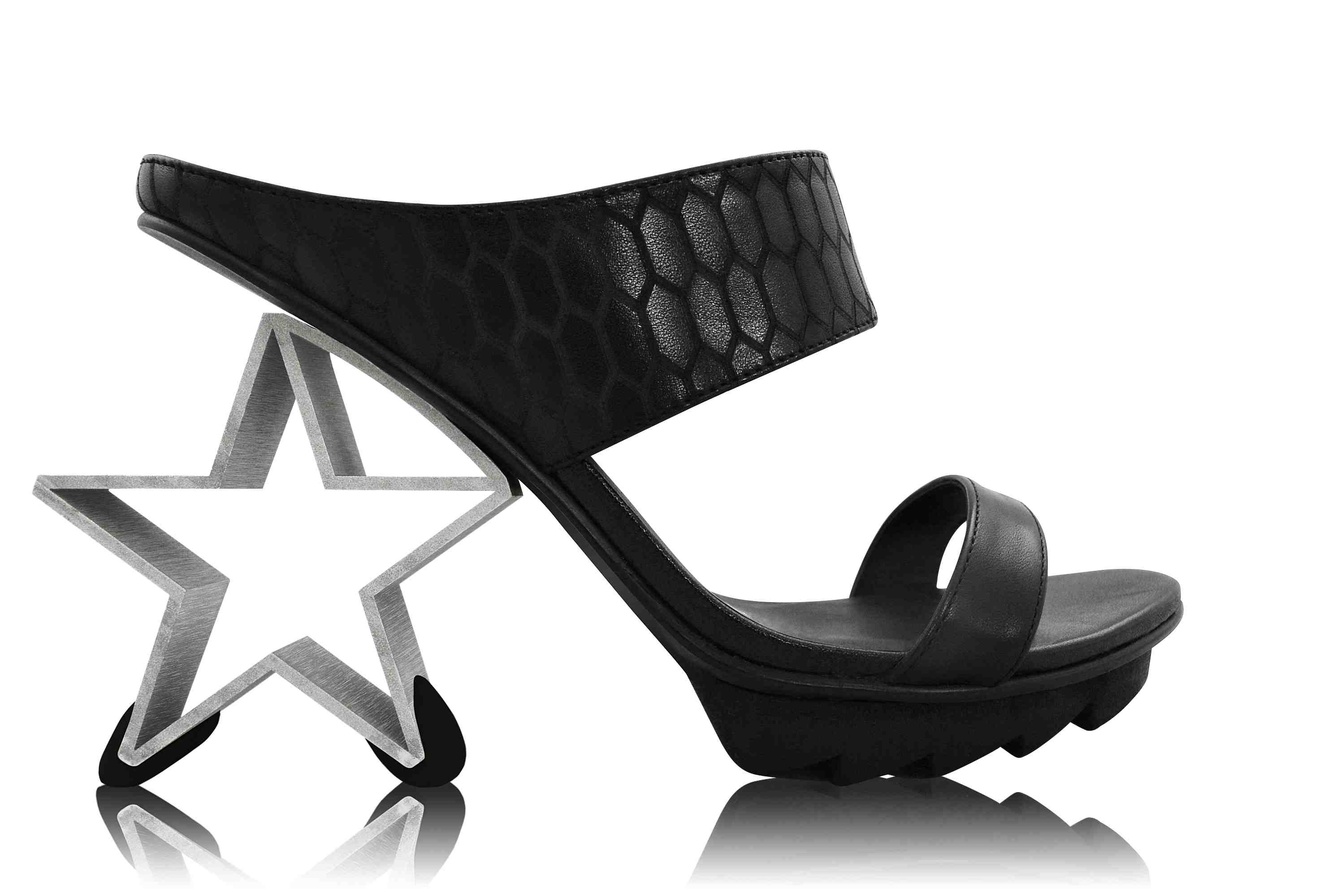 Taking inspiration from “The Black Widow” character, these shoes are quite distinct from the Mojitos; although you can clearly see they are a Hakes’ work of art. It has a star-shaped heel. YES. STAR SHAPED. Love it.