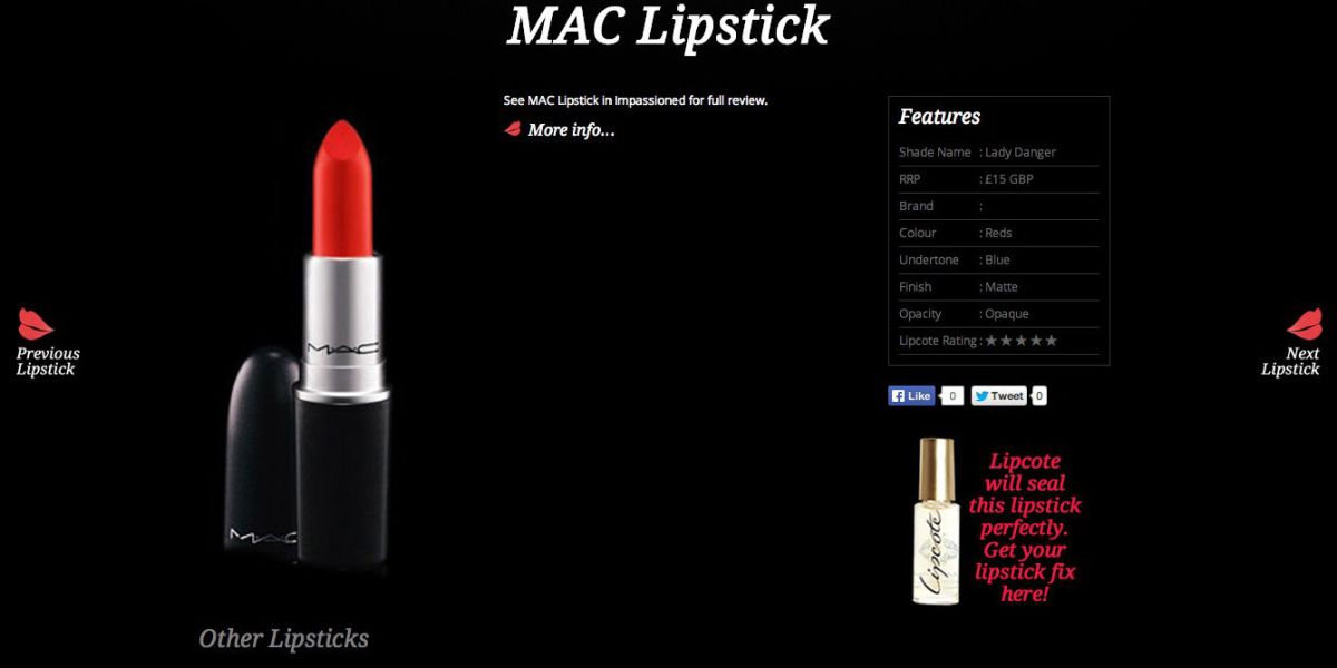 lipcote_lipstick_finder_ladydanger Published April 21, 2014 at 1338 × 670 in Lipcote Lipstick Finder Next » Like it? Spread the love! xTweet Click to share on WhatsApp (Opens in new window) WhatsApp Share on Tumblr Click to email a link to a friend (Opens in new window) Email Like Loading...