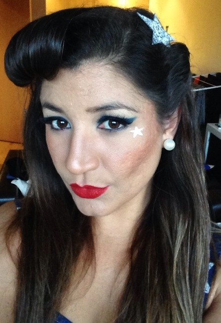 For my hair, I created a victory roll-esque at the fringe and a smaller roll on the other side, and placed two stars on each side.