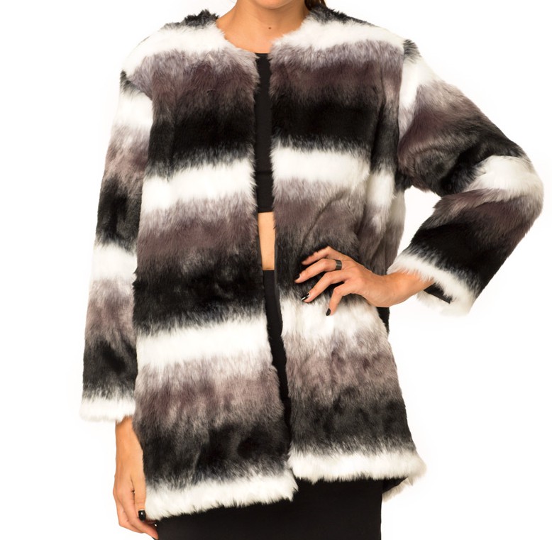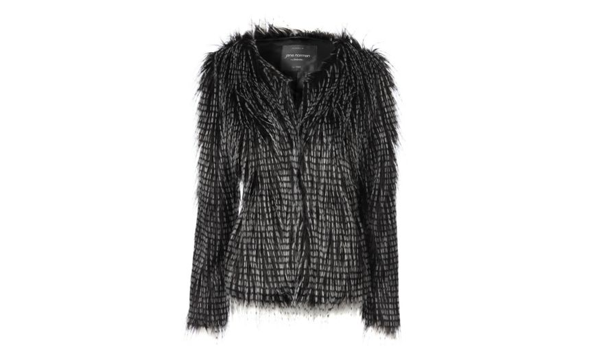 This black and white Motel Harley faux fur jacket, priced at £79, is oversized and with a rounded collar. Lovely.