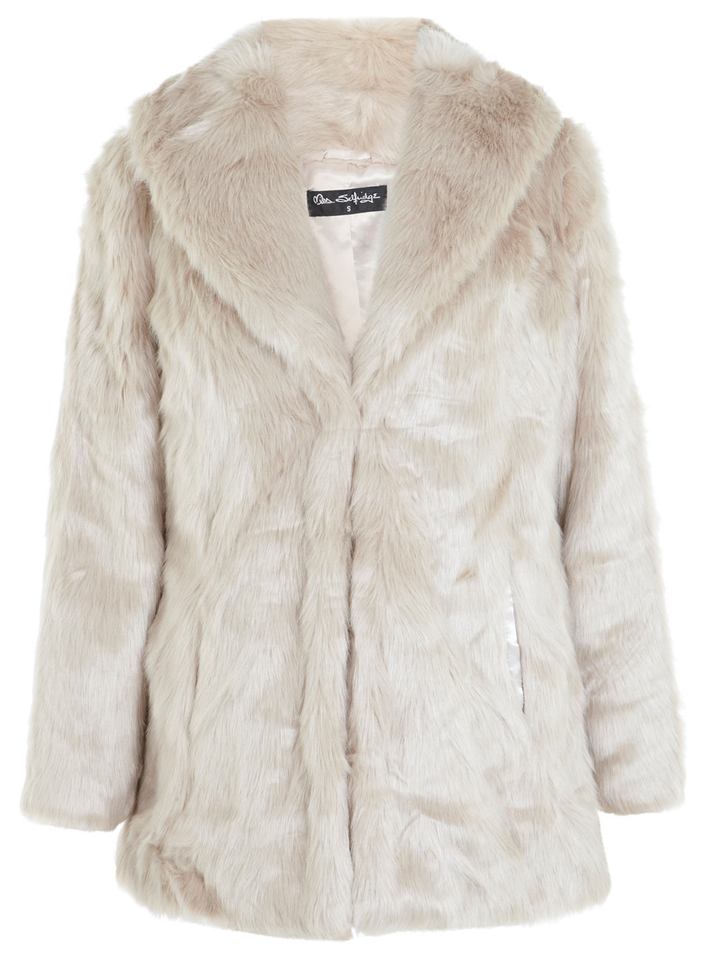I love Miss Selfridge’s coats, and in the fur department, this season, they are not disappoint – look at this lovely beige shawl collar coat, at £99.