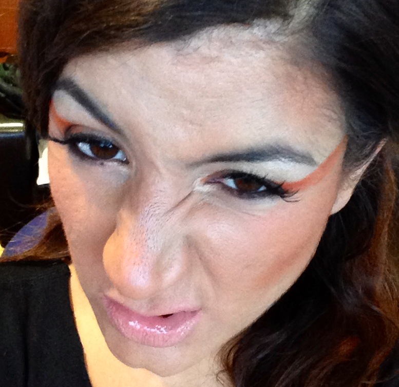 I am kicking off with a look inspired by a fierce, tribal woman – think glam warpaint. For this look I used mainly the super bright Orange and the warm brown Embark MAC eyeshadows.
