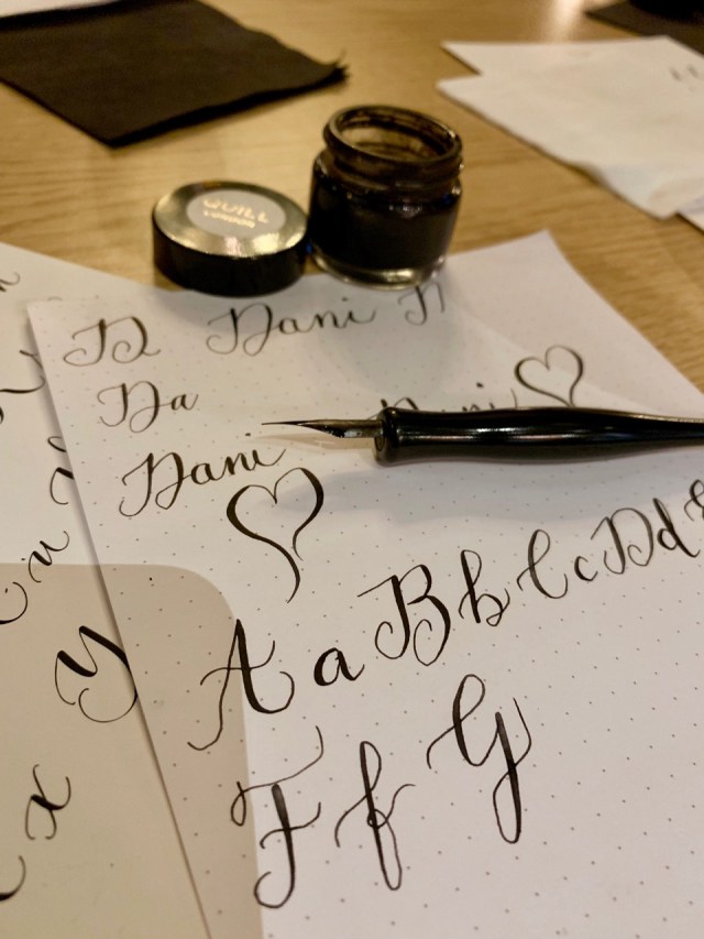 First, the calligraphy workshop ran by the talented Mathilda from Quill London. I have been to one or two workshops with those guys and they are a great intro to the art of calligraphy.