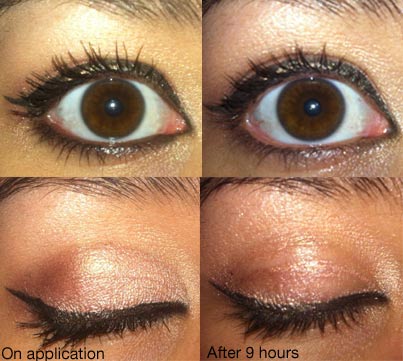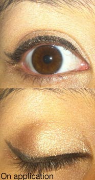 I prep my eyes with the e.l.f or the NYX primers. Sometimes, I just brush Vex or Nylon on eyelids and brow bone and apply an eyeliner, across the whole lash line of just under half, for more sultry but at the same time lighter eyes.