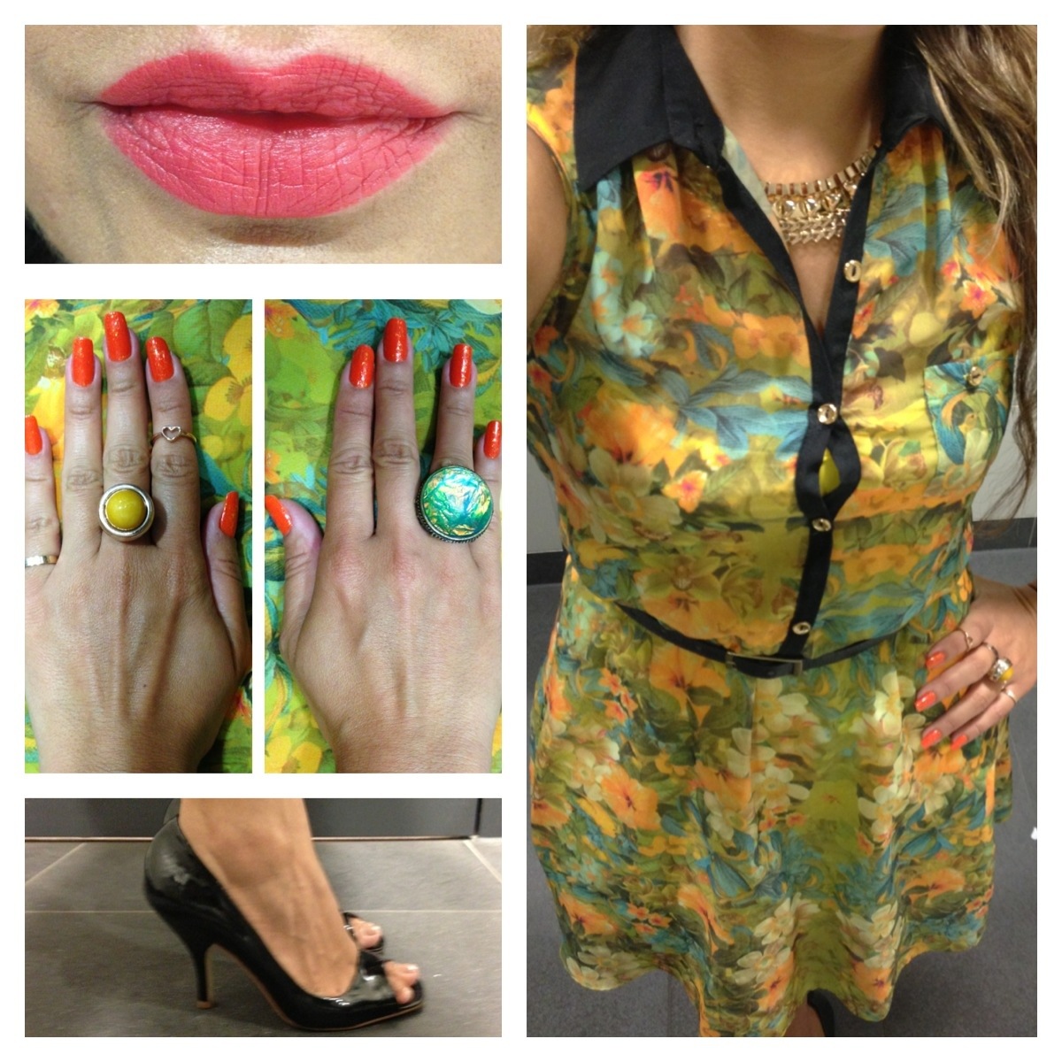Flowery shirt dress from Primark, black patent peep-toes from Ibiza, rings from H&M and Forever 21. Lisptick is Glo Minerals Siren.