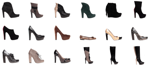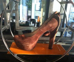 Most of the shoes in the collection are high-heel courts. The lines are simple and elegant and most shoes are sky-scrapers! Suede features quite a lot and black predominant, and overall, good neutral colours, suitable for all time wear in the coming season. However, splashes of colour are present and the attention is on the small details which usually run on the back of the shoes: a funky heel shape, colour contrast, visible stitching, different texture, studs or fringes.